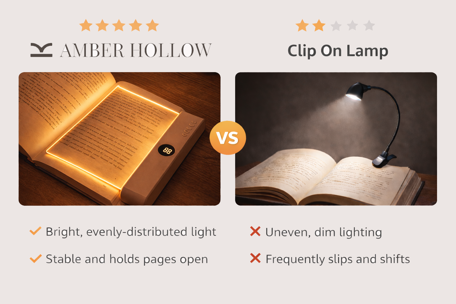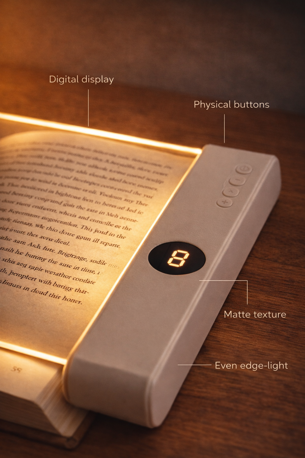 The balanced amber output is designed specifically for reading clarity without harshness or glare.